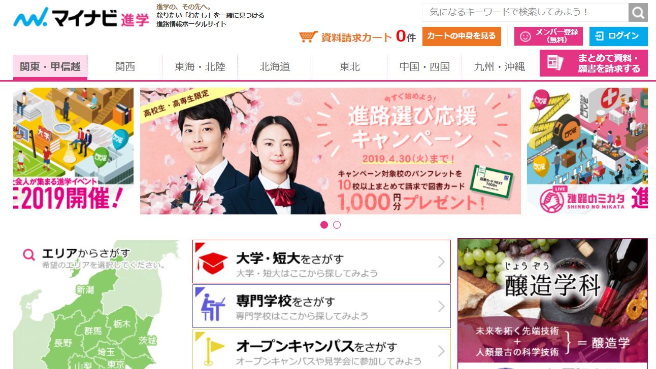 専門学校や大学の情報が一括検索できて、無料の資料請求ができる情報サイトを紹介しておきます。